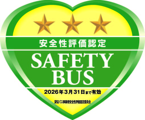 弊社は「貸切バス事業者安全性評価認定制度」にて最高評価の星3に認定されています。